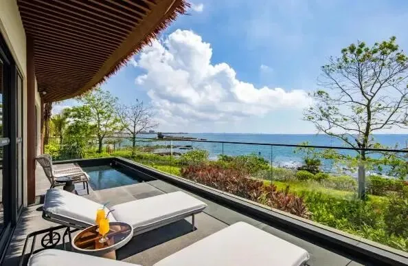 防城港广悦华·观海墅配备1个无边泳池,独栋海崖墅居群落搭配独立庭院,将壮阔海景尽收眼底,带来观海享受。以 “大自然生态+文化” 为核心理念 ,不仅能让您亲近自然、 放松身心 ,更深度融合地域文化,打造独特旅居体验。餐饮方面,广悦华·观海墅提供以自助西式为主的早餐 ,精致餐品琳琅满目; 并提供高端定制西餐及东南亚特色美食供客人选择,同时支持散点送餐服务,让宾客足不出户即可享用美,以贴心服务诠释豪奢度假的品质与格调,引领广西高品质康养生活新潮流。