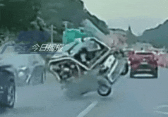 ▲“老头乐”随意变道导致碰撞后,乘车人直接被甩出车外。