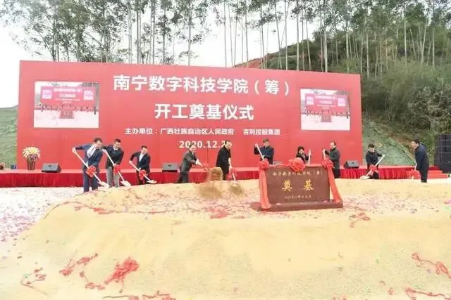 5年来,广西民族大学相思湖学院对吉利的呼应可以说是相当迅速。很快,学校就在南宁江南区友谊路拿下了2000多亩地。在2020年12月20日,也就是签约要筹办南宁数字科技学院4个月后就动工建设。并且,用不到200天的时间,学校从西乡塘区向江南区“大搬家”,完成了整体搬迁。