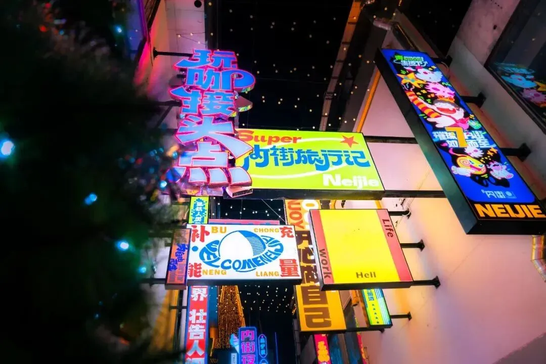 最佳打卡点:霓虹灯牌密集的十字路口、临街的店铺窗前。