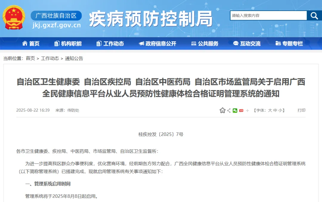 本文内容来源于广西壮族自治区卫生健康统计信息中心《广西从业人员预防性健康体检合格证明管理系统使用培训》。