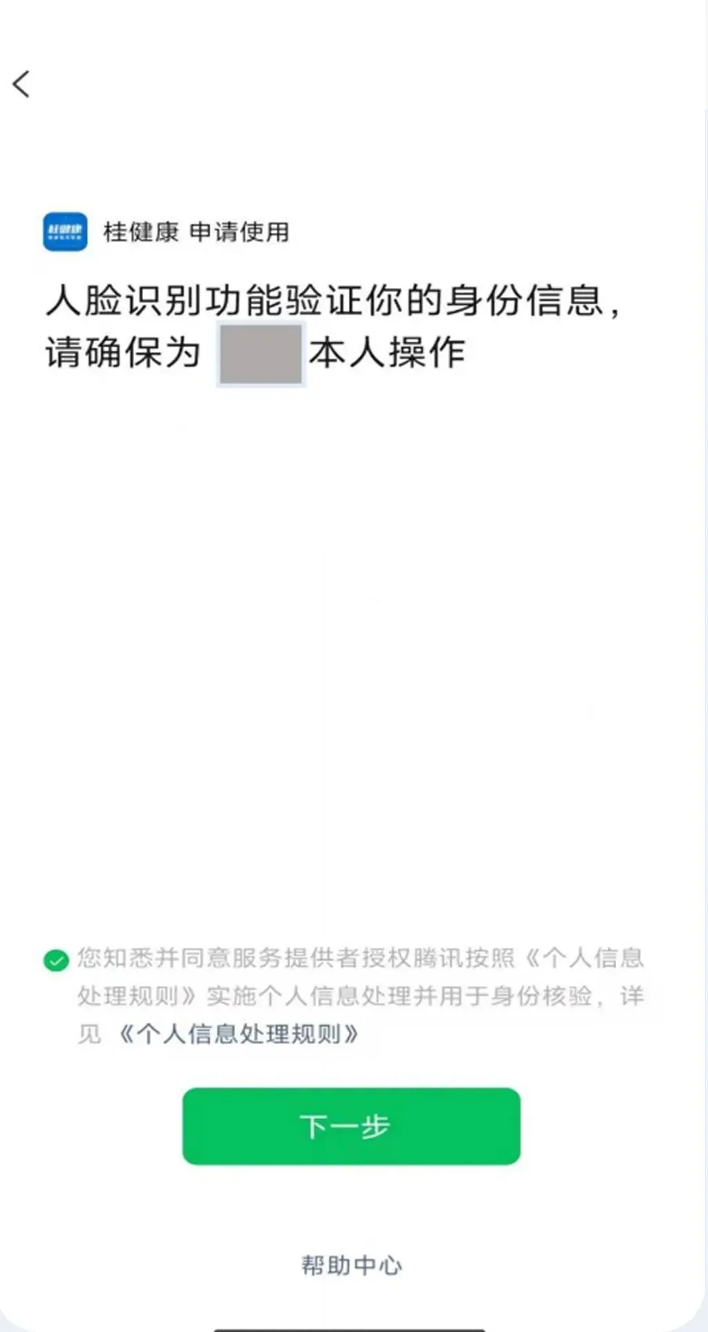 在人脸识别认证页面进行验证后,自动打开健康证页面。