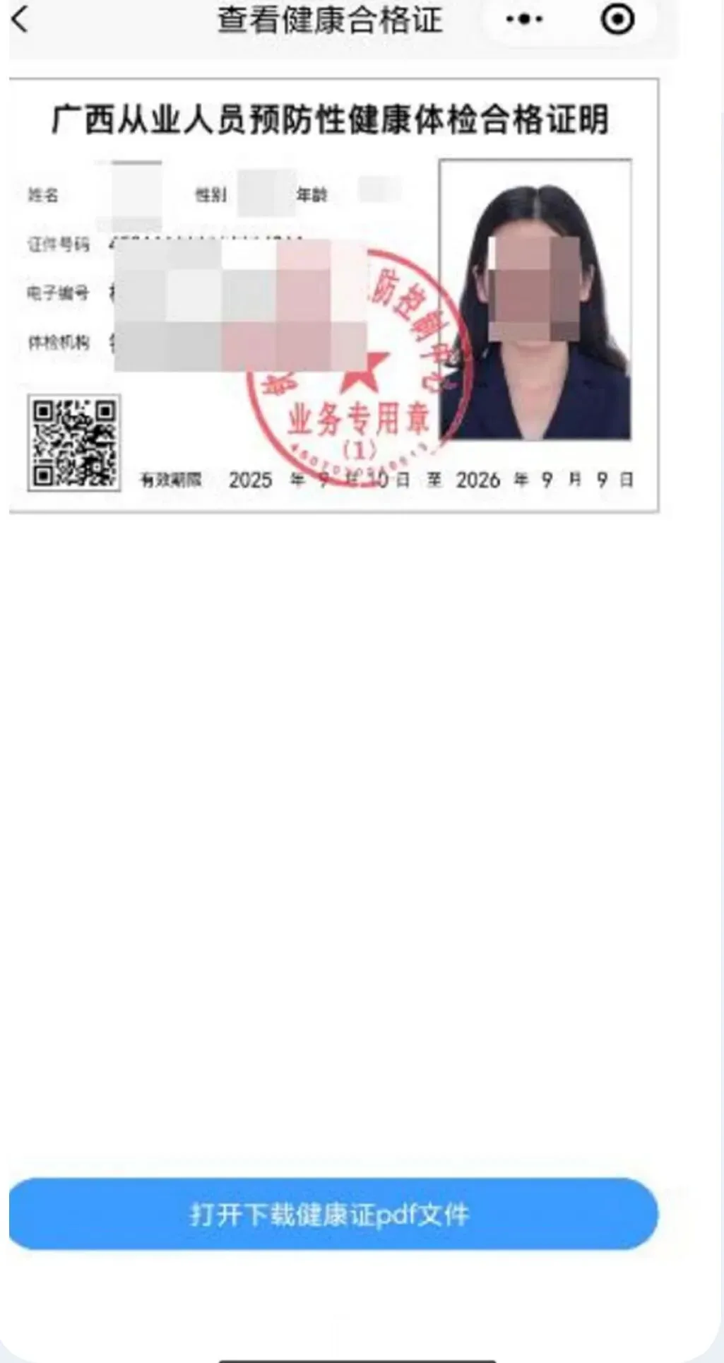 简单来说,电子健康证就是纸质健康证的“电子版”,由广西从业人员预防性健康体检合格证明管理系统统一生成和管理。