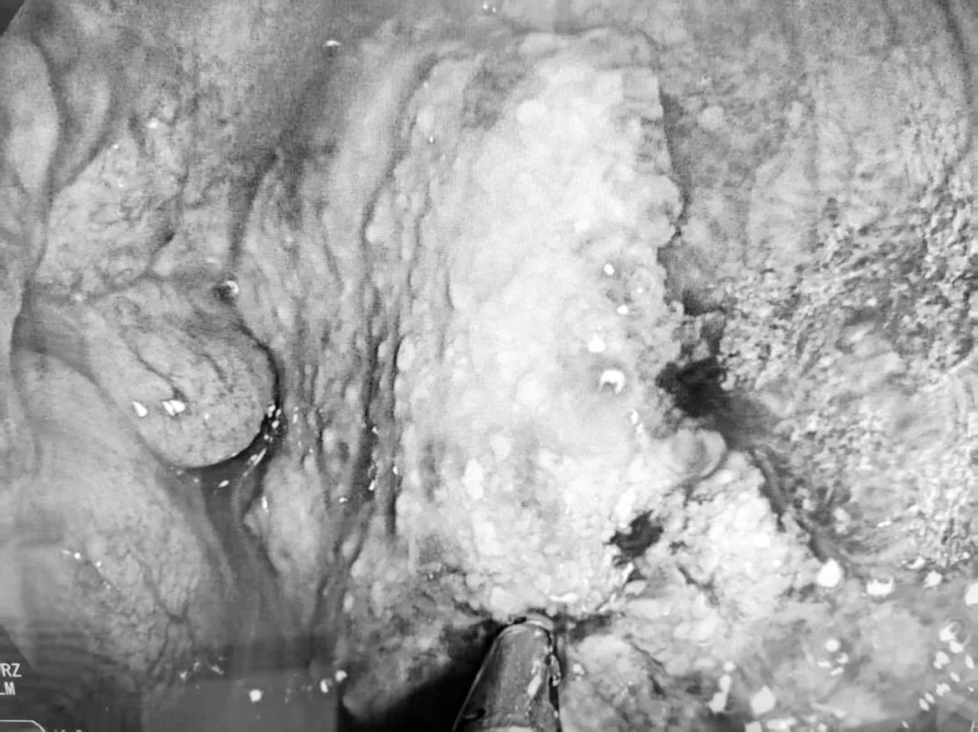 手术中,专家团队通过患者脐部这一天然褶皱处建立微小通道,将胃镜灵活引入腹腔。在清晰的內镜视野下,团队对腹腔进行了系统、全面的探查。最终,在腹腔内发现了腹膜病灶,并成功实施了精准活检。术后病理回报确诊为“高级别浆液性癌”。这一关键诊断,一举揭开了肿瘤来源的迷雾,为后续精准治疗指明方向。