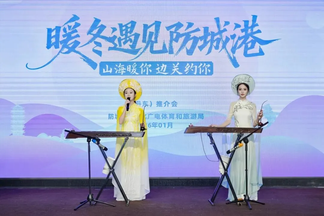 推介会现场,国家级非遗京族独弦琴悠扬旋律与防城港城市宣传片的唯美画面交相辉映,提前将北部湾的海风与暖阳送至现场嘉宾眼前。