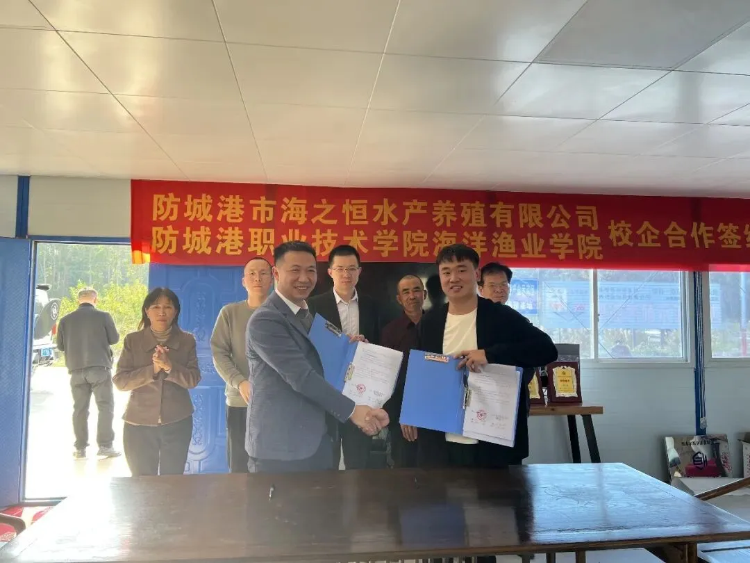 为深化办学内涵、优化人才培养模式,助力临港产业高质量发展,1月13 日下午,防城港职业技术学院与防城港市海之恒养殖有限公司在防城港市港口区海洋局共同见证下,举行校企合作签约暨合作基地挂牌仪式。