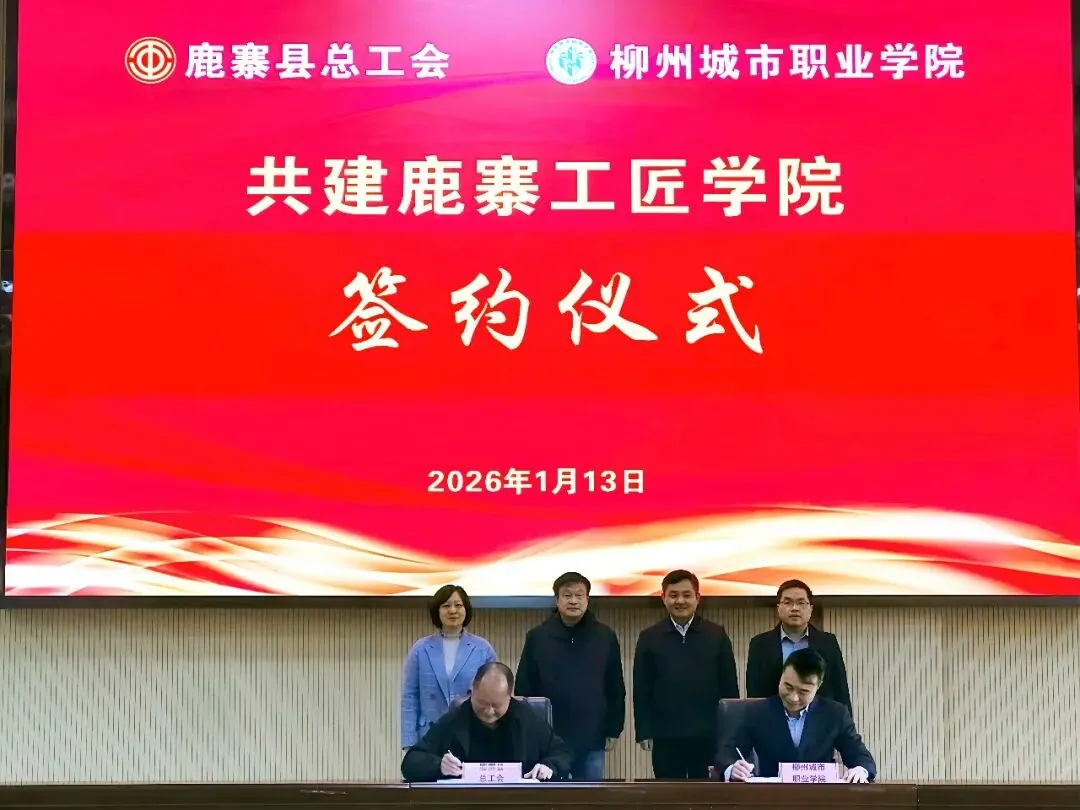 本次签约标志着柳州城市职业学院与鹿寨县总工会的合作迈上深度融合新台阶。双方将以鹿寨工匠学院为平台,共同打造集培训、竞赛、传承于一体的高技能人才培养体系,为地方产业升级和经济社会高质量发展增动力、添活力。
