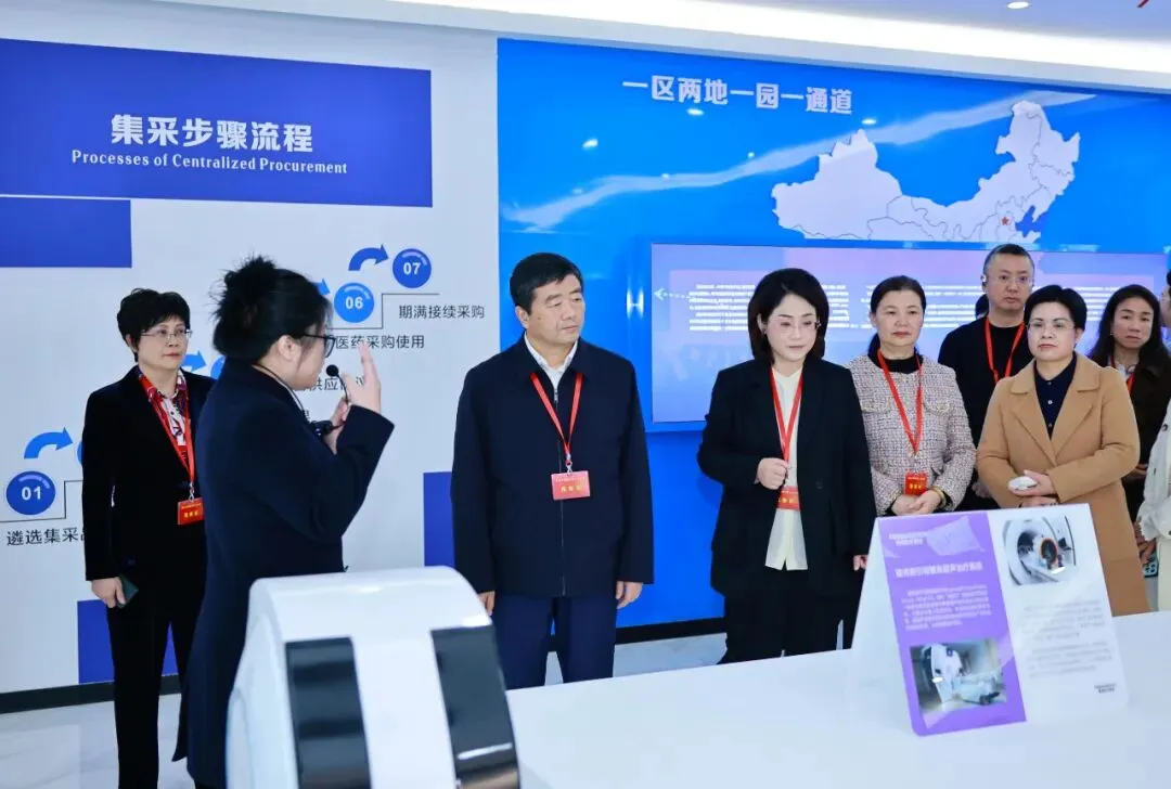 1月13日至14日,自治区人大常委会组织由广西选出的第十四届全国人民代表大会代表到我市。图为代表们在中国—东盟医药区域集采平台,详细了解防城港市重大项目建设、产业升级、开放合作等工作推进情况。记者 韦荣合 摄