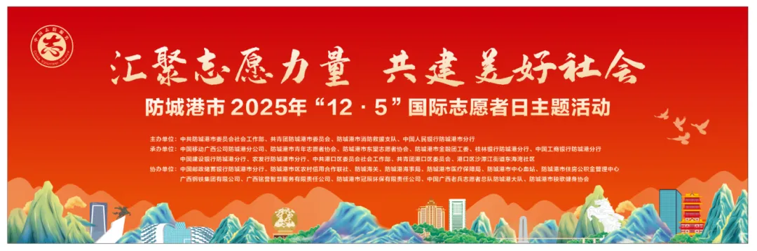 为迎接第40个国际志愿者日,12月5日上午,团市委联合市委社会工作部、市消防救援支队、中国人民银行防城港市分行等多家单位在白鹭公园广场举办“汇聚志愿力量 共建美好社会”防城港市2025年“12·5”国际志愿者日主题活动。本次活动旨在深入贯彻落实习近平总书记关于志愿服务的重要指示精神,弘扬"奉献、友爱、互助、进步"的志愿精神,推动全市志愿服务事业持续健康发展。