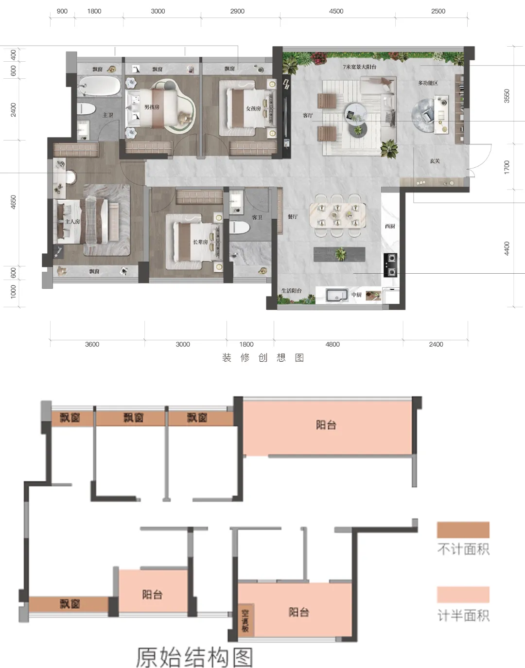 当然,小编还是建议实际装修时保留一部分生活阳台,大户型居住人口多,洗晒与放置杂物的空间还是要有的。