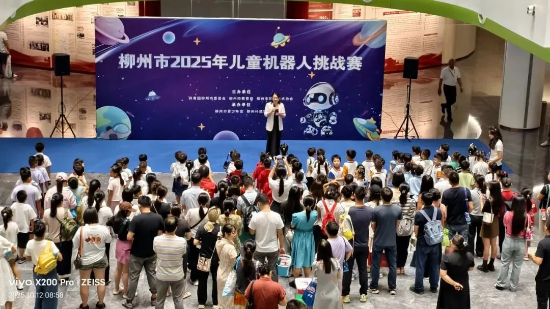 10月12日,“柳州市2025年儿童机器人挑战赛”在柳州市青少年宫柳东宫盛大启幕,来自全市的1400余名科技萌娃在此集结、高能开战,用创意与协作贡献了一场精彩的科技盛宴!本次赛事由共青团柳州市委员会、柳州市教育局、柳州市科学技术协会联合主办,柳州市青少年宫、柳州科技馆承办。相关单位领导参加开幕式,团市委副书记庞诗宇宣布活动开幕。