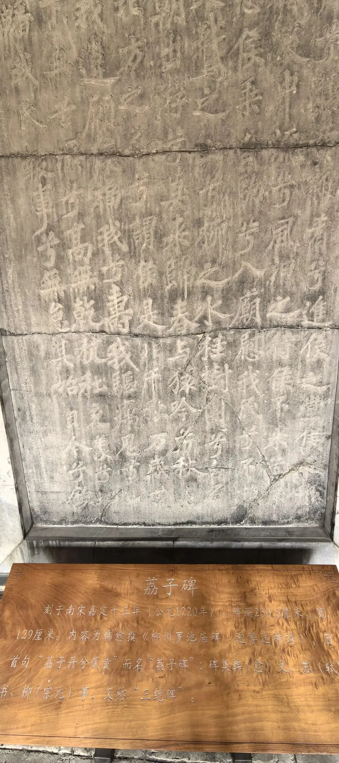 柳市长死后被归葬长安,柳侯祠内安放的是他的衣冠冢。祠中有一块著名的“三绝碑”,是比他年长五岁的韩愈为他撰写的祭文,再由比他年轻两百多岁的苏东坡题字,也算是唐宋三大家穿越200年的相遇了。