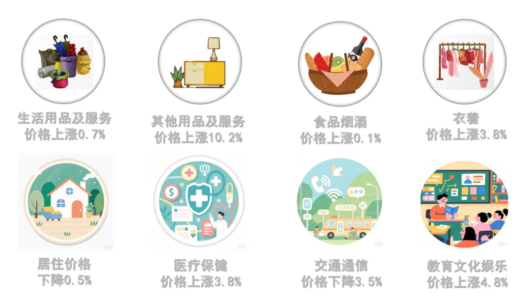 3.其他用品及服务价格上涨1.9%。一方面,受国际铂金、金价格调整影响,铂金饰品、金饰品价格分别上涨14.8%、8.5%;另一方面,民宿商家调整部分民宿价格,其他住宿价格上涨5.7%。