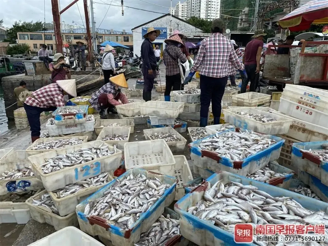 ▲在北海侨港码头,一波又一波生猛海鲜上岸,市民争相抢购。南国早报记者 彭庆摄