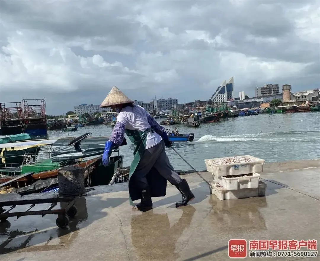 ▲北海侨港码头,一波又一波海鲜被运送上岸。 南国早报记者 彭庆摄