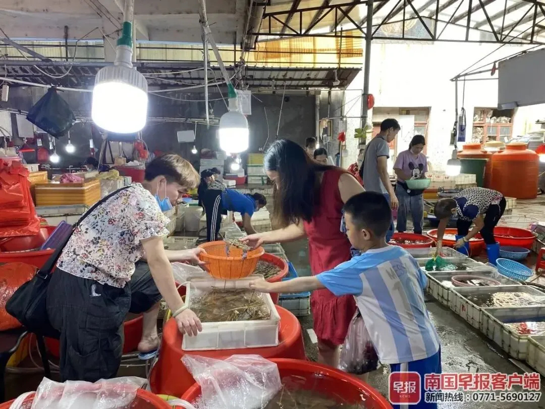▲防城港海鲜市场,市民抢购海鲜。南国早报记者 钟小启摄