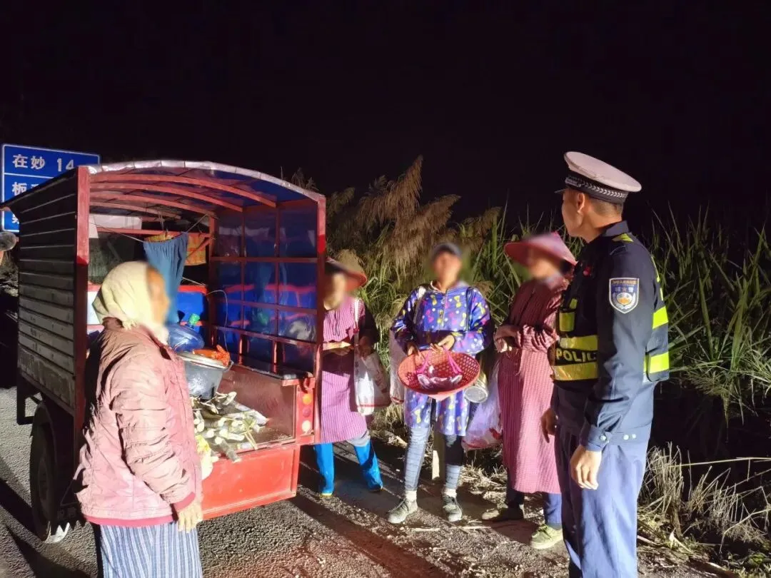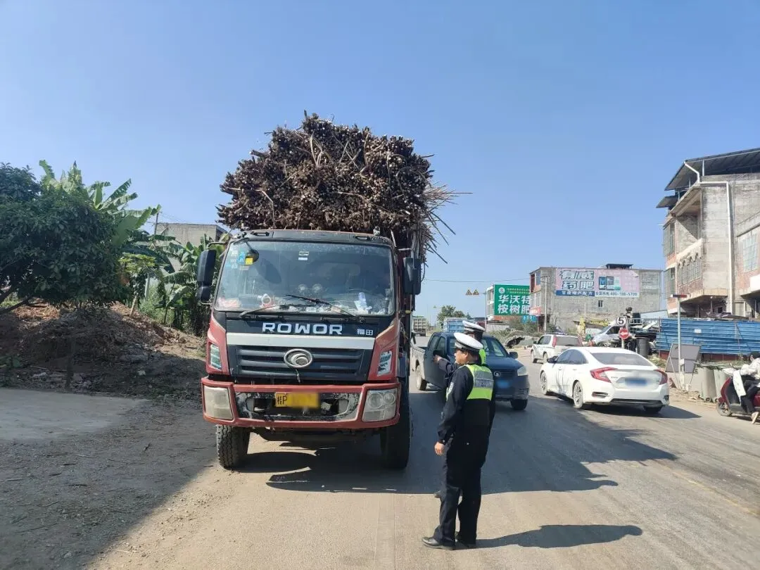 经询问,车上乘客均为砍收甘蔗的蔗农。驾驶人为了减少往返次数,抱着“多载两人、路程不远、未必遇到检查”的侥幸心理冒险上路,结果被当场查获。民警责令驾驶人立即对超载人员进行安全转乘,并依法对其进行了处罚。