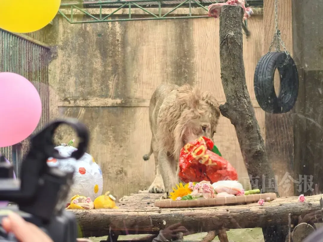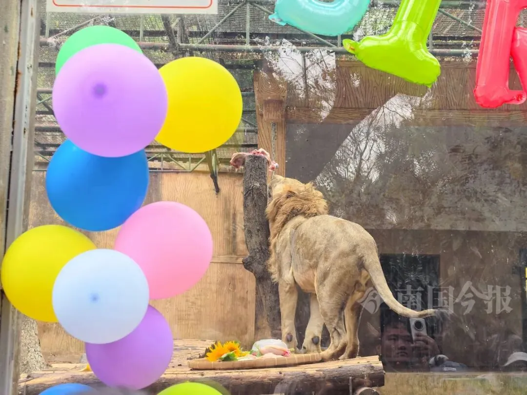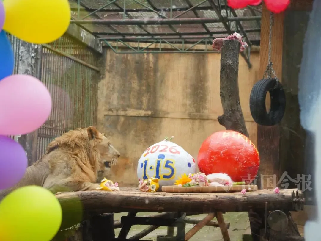 1月15日上午,柳州动物园猛兽区格外热闹。提前一天布置好的生日派对现场,围满了专程赶来参加活动的粉丝们。几名工作人员正在“圆宝”的活动区域摆放定制款生日蛋糕。当天,柳州动物园为狮子“圆宝”举办了2周岁生日派对。