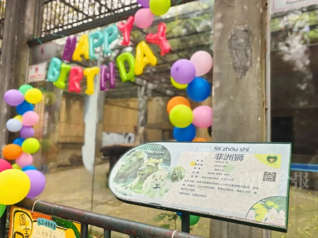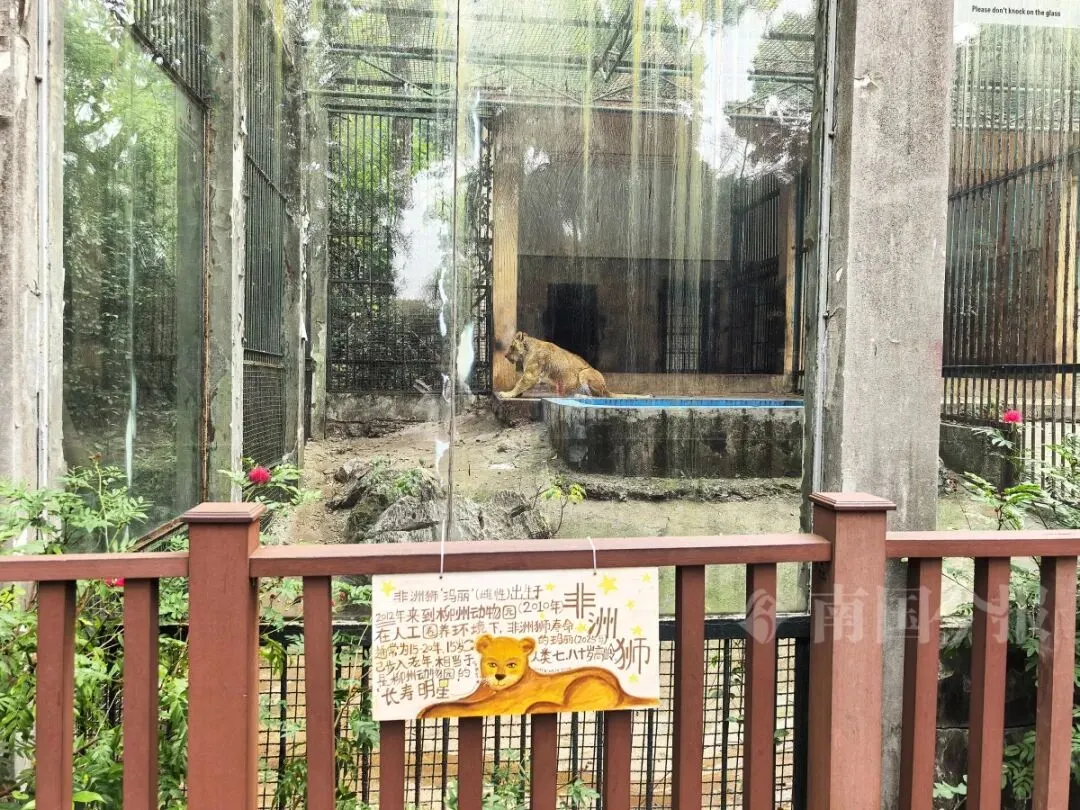 据悉,柳州动物园猛兽区现有两只非洲狮。除“圆宝”外,还有一只非洲狮名叫“玛丽”,出生于2010年,是一只成年母狮,它与“圆宝”狮舍中间还隔着一间。