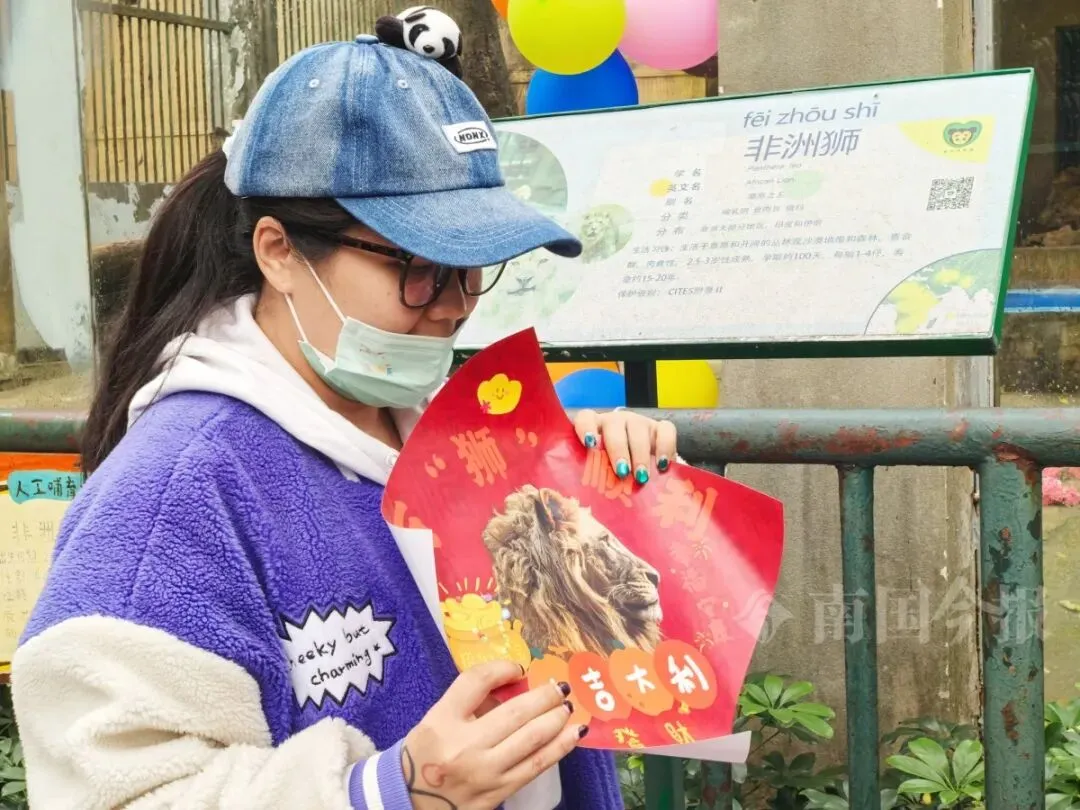 吴女士是“圆宝”的忠实粉丝,从它出生起便一直关注着其成长。看到它从当初的小可爱成长为如今的“帅小伙”大狮子,吴女士深感欣慰,并祝愿"圆宝"未来越来越好。当天,吴女士带来了自己亲手制作的、印有各种动物的贴画和杯垫等礼品,与到场的其他“圆宝”粉丝分享。