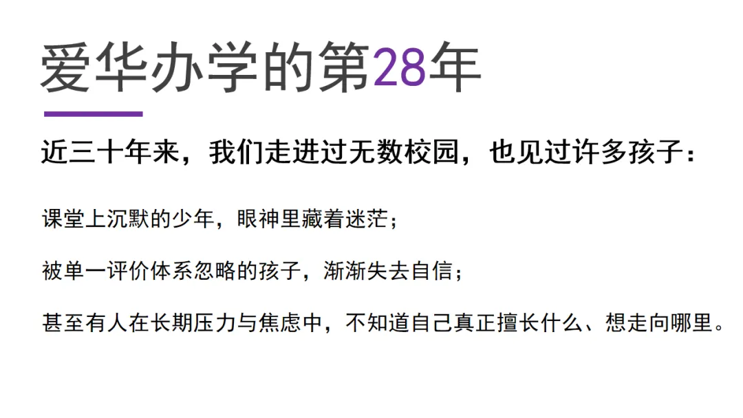 这,正是爱华创始人当年离开体制内、创办学校的初心——