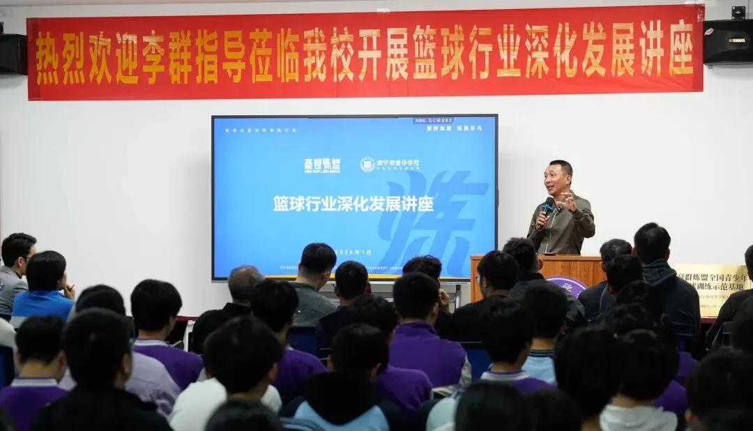 在这里,李群先生面向学校中层管理团队及各班篮球爱好者,展开篮球行业深化发展讲座。