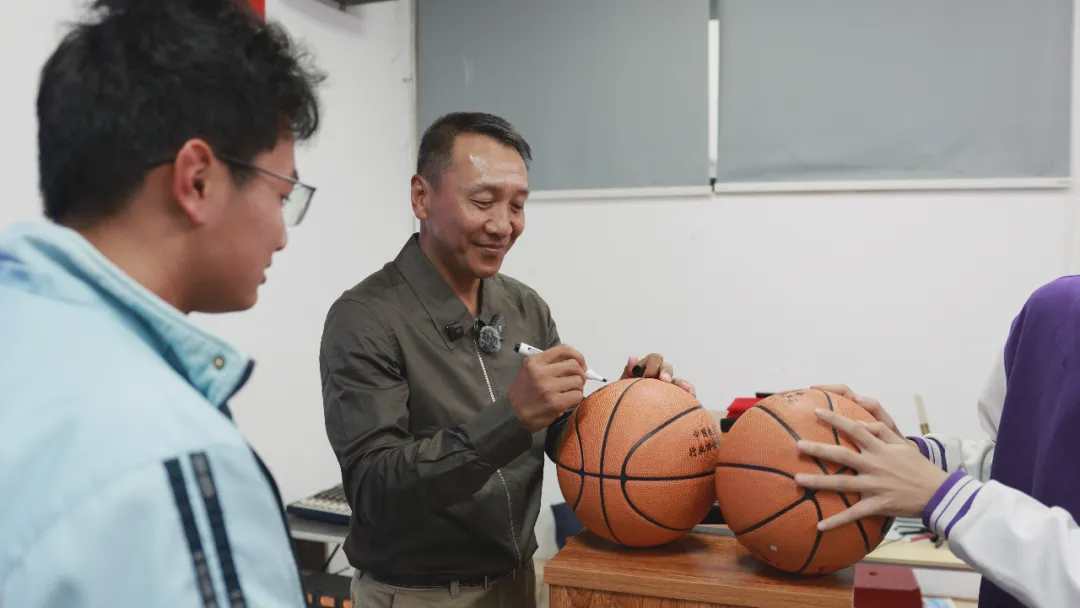 讲座临近尾声时,两位同学抱着篮球,略显拘谨,却又格外坚定。他们走上前,请李群先生在篮球上签名留念。