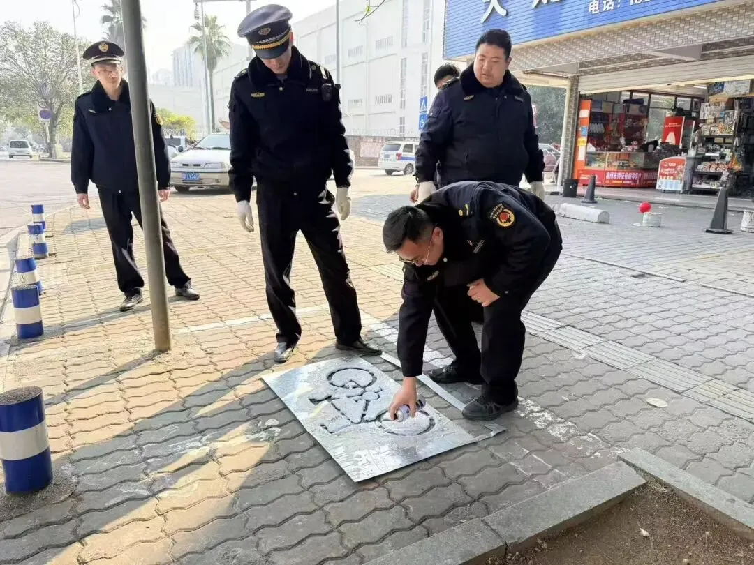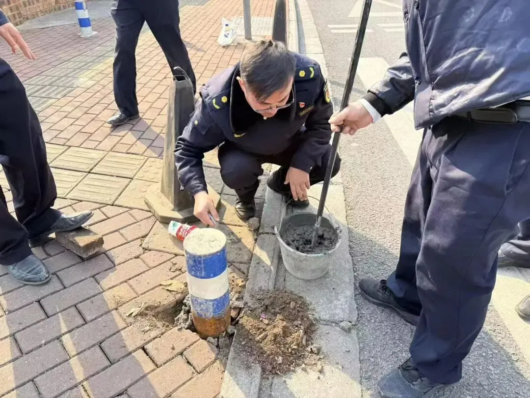 1月14日,为进一步遏制人行道违停乱象,执法人员在人行道出入口处布设了隔离桩,避免机动车驶入,并对人行道上已经模糊的非机动车停车位重新划线,设置醒目的非机动车停放标识。执法人员补种隔离桩