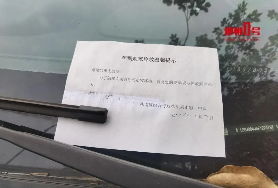 “光提醒是没有用的,最好是能将车拖走并进行处罚。”黄女士说,车辆停放在人行道上,归城管部门监管,有时接到反映,有城管人员到场后将一张《车辆规范停放温馨提示》放到车头,但根本没有用,车辆仍然继续乱停。记者发现,多辆停放在人行道上的汽车的雨刮下,压着一张《车辆规范停放温馨提示》,落款单位为“柳南区综合行政执法局市容一中队”,落款时间是2026年1月7日。从落款时间可看出,这些车辆乱停在人行道上的时间已超过了1周。