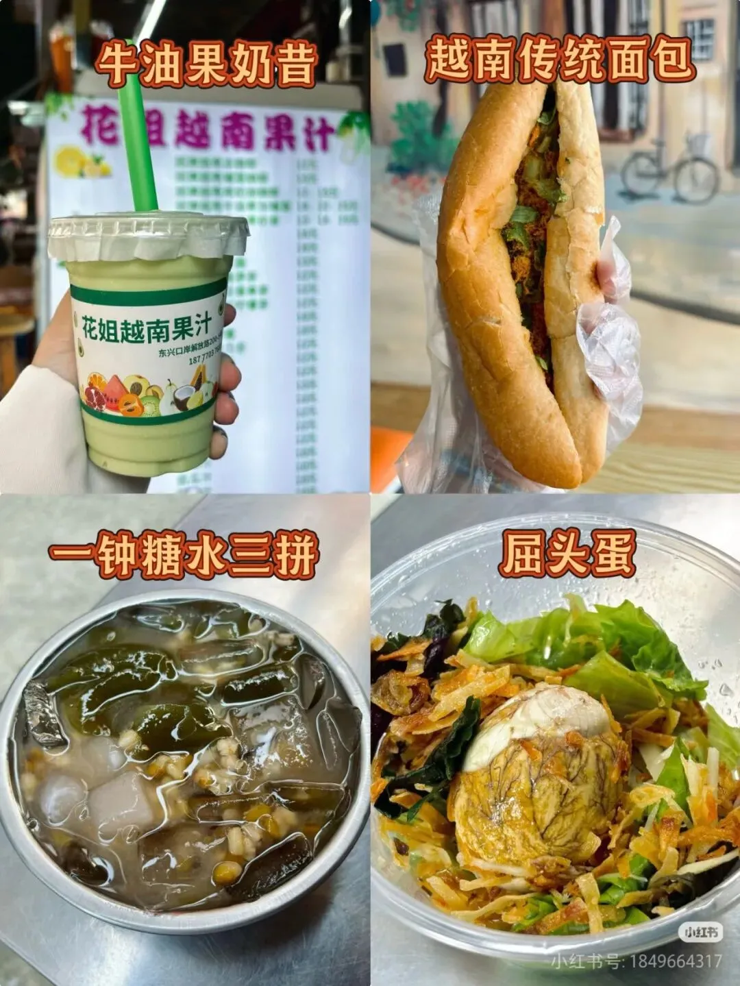 边境城市的另一大魅力是美食。我们在东兴尝试了多种越南风味小吃: