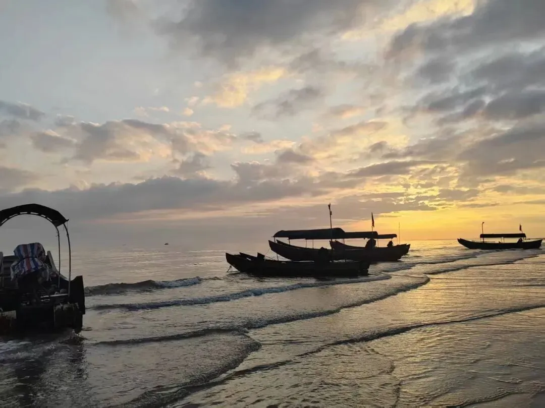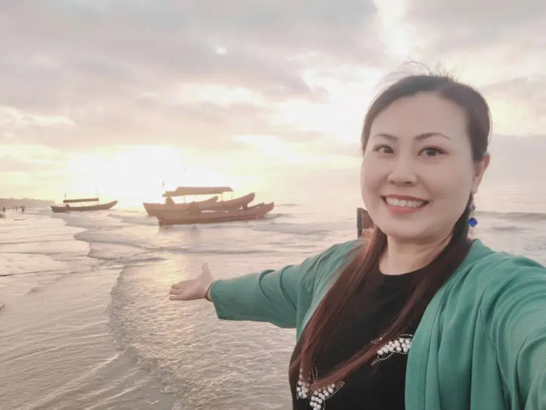 下午四点多,我们到达万尾金滩,这里是京族聚居地,保留了浓郁的少数民族风情。阳光已经变得柔和,海面波光粼粼。京族特色的渔船搁浅在沙滩上,形成了一道独特的风景线。我们赤脚走在细腻的沙滩上,海浪轻轻拍打着脚背,一周的奔波劳碌在这一刻得到了彻底放松。