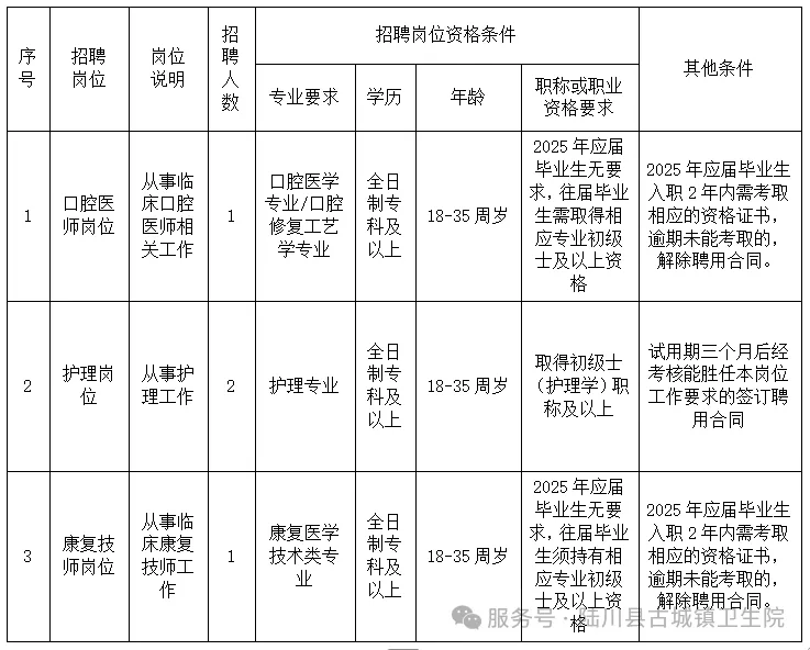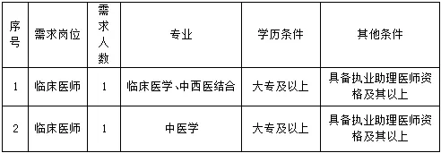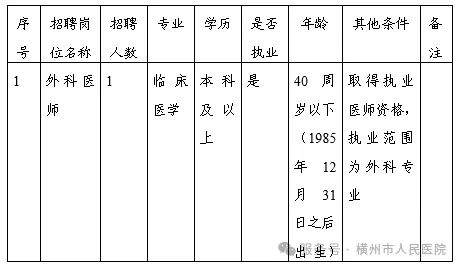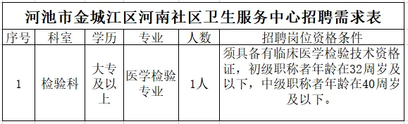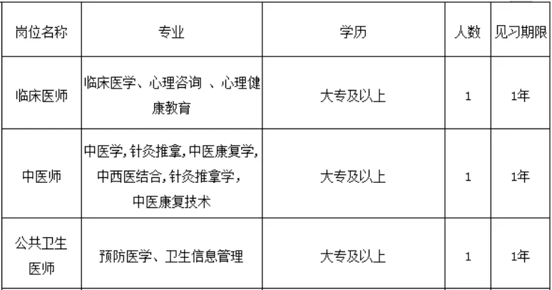 岗位1:医学检验相关专业毕业1名,全日制大学本科及以上学历,取得本科及以上学历的毕业证、学位证,年龄在35周岁以下;