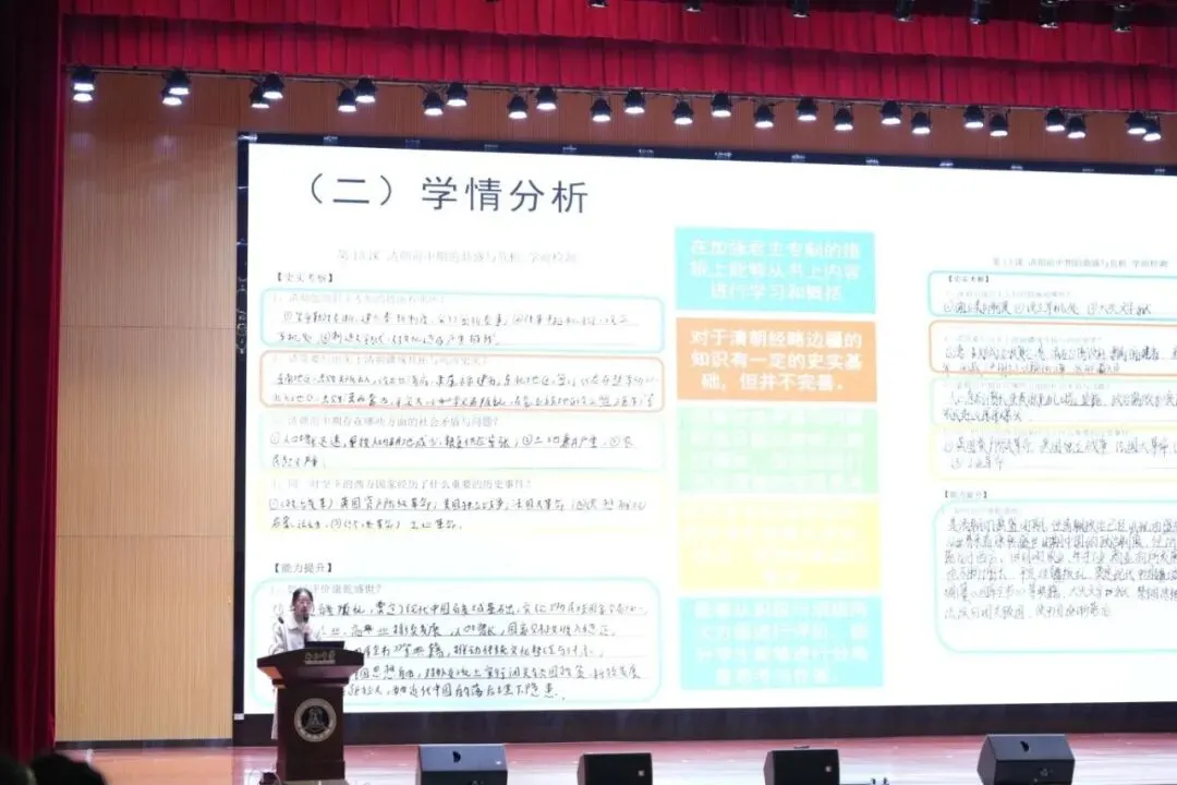 在李仁福老师的指导下,历史教研组的何慧慧老师进行了题为《以学定教,评学合一:探索高中历史专业化备课实践新路径》的读书分享。在《备课专业化》的理论指导下,他们着力探索教学设计理念与实践操作的深度融合,并以《清朝前中期的鼎盛与危机》一课为例,系统改进了课标分解、目标叙写与评估任务的一体化设计,完整呈现了“学为中心,立德树人”的教育理念。此次分享强调,历史课堂不应止步于知识传授,更应注重学科核心素养的精准培育。通过专业化备课,教师能够更高效地达成教学目标,使历史教学更具思想温度、思维深度与育人高度。