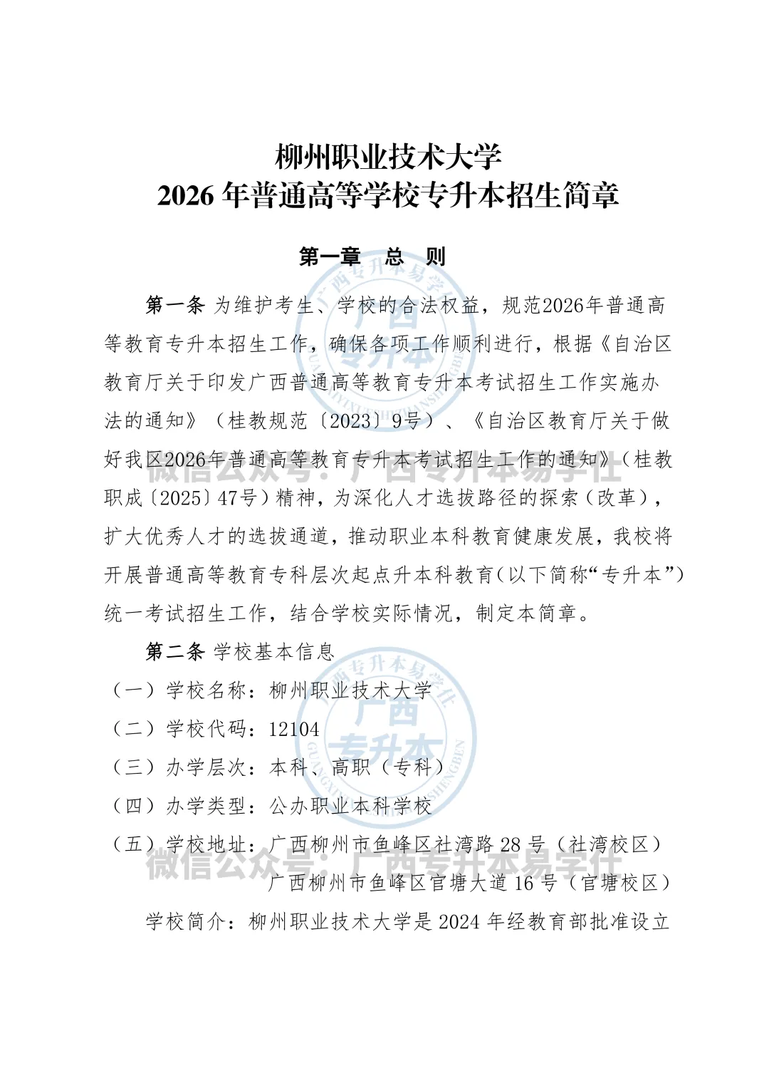 >新增院校!柳州职业技术大学2026专升本招生简章、专业学费公布