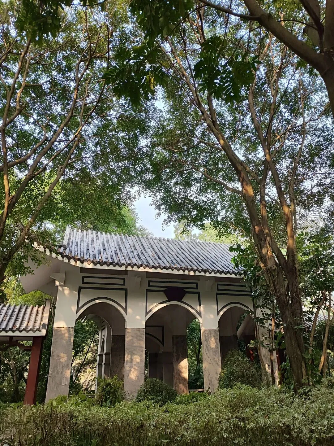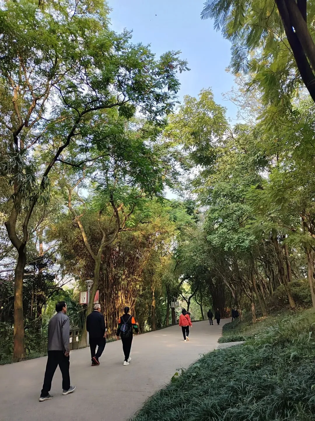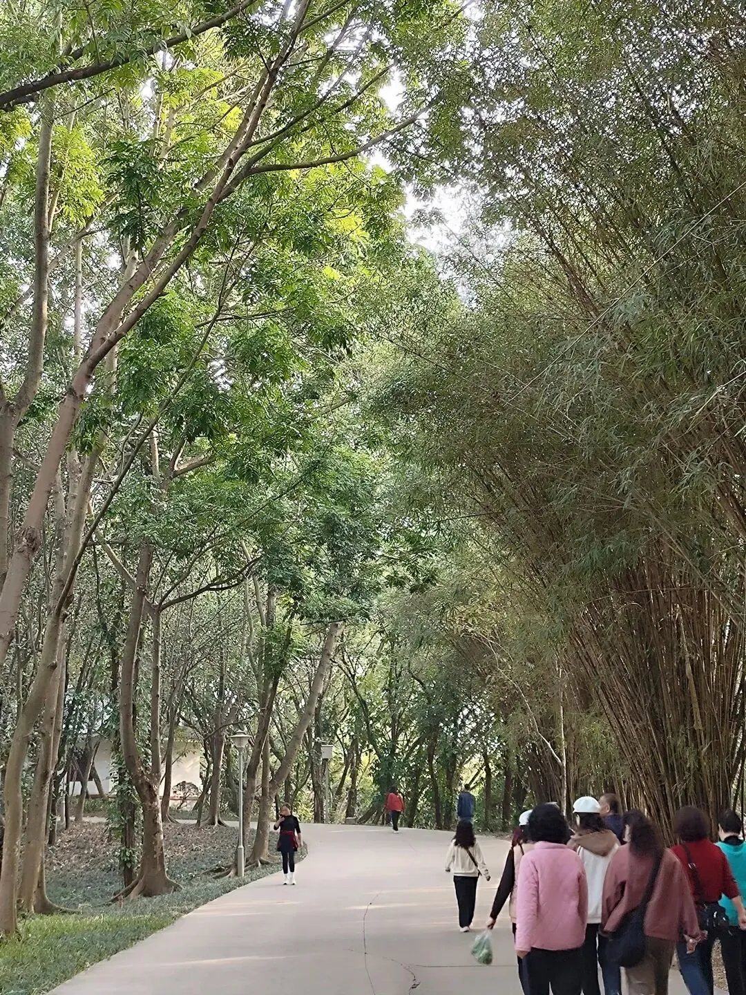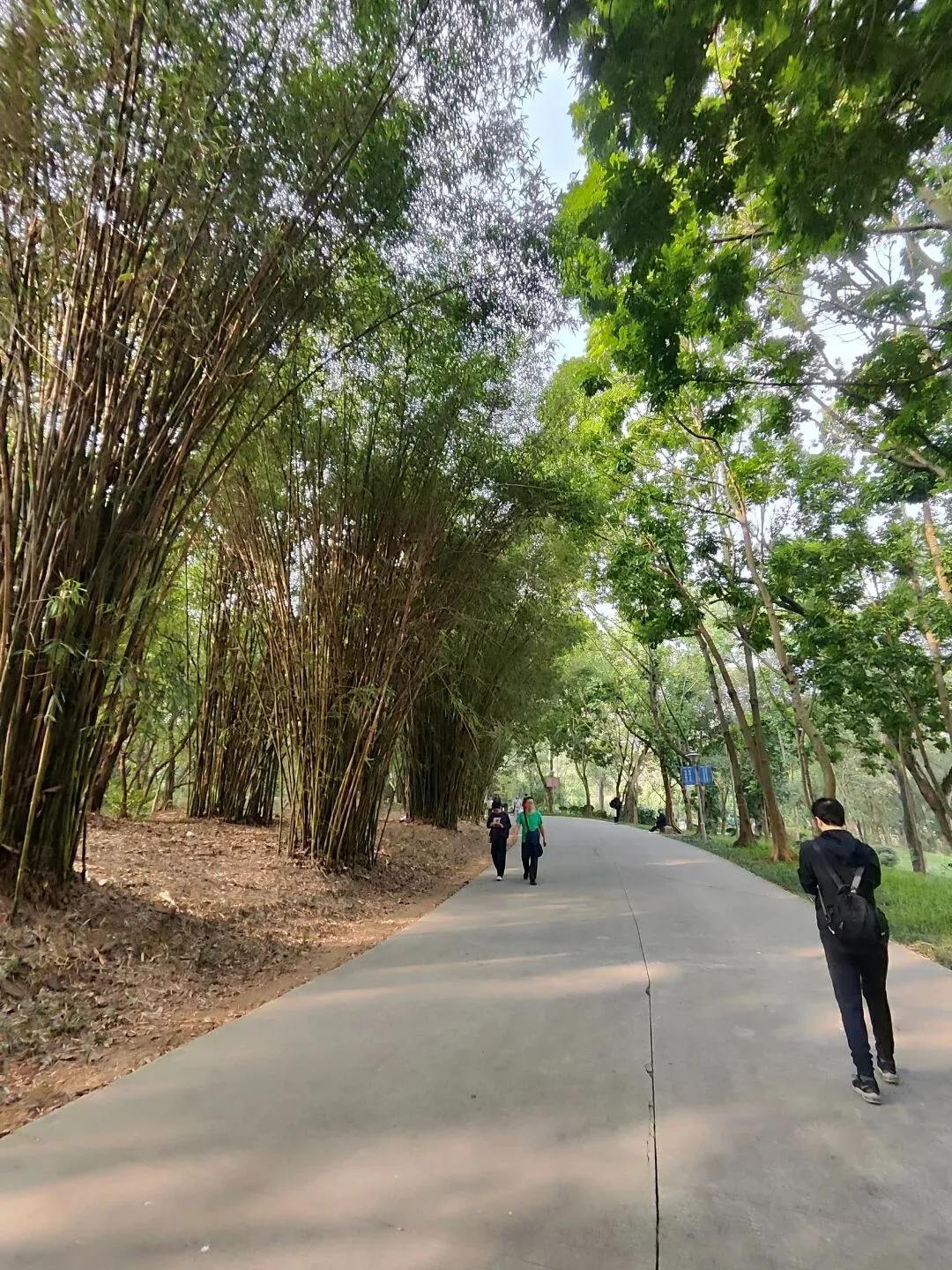 南宁市区的狮山公园,清晨锻炼散步的人很多,公园的地形高低错落,上坡下坡的小路坡度还是很大的,但走在绿竹环绕,亭台楼阁布局的公园里心情还是很愉悦的