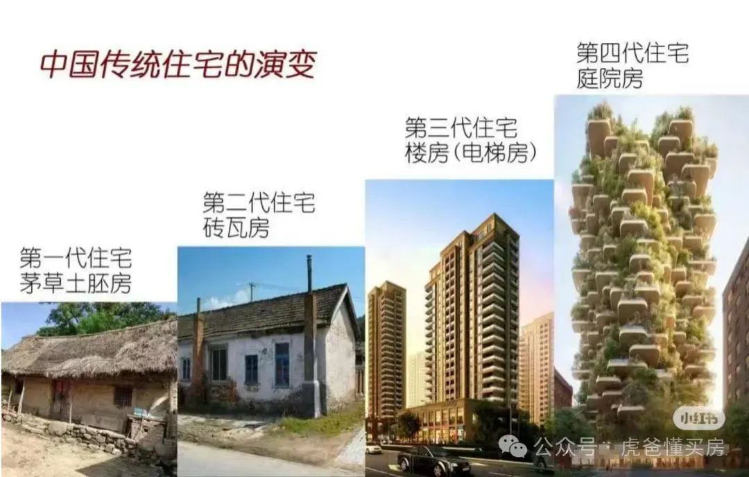 一代茅草屋-二代砖瓦房-三代电梯房-四代庭院房