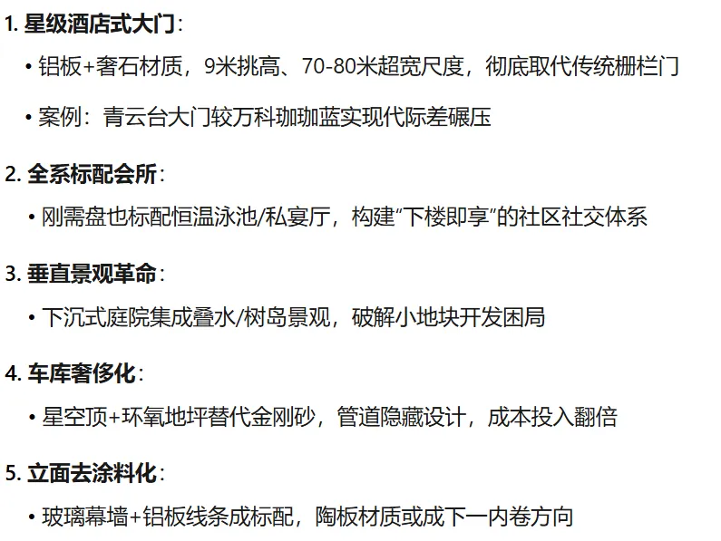第三代是10-20年时代的高层和超高建筑,开始向更高的空间做突破,同时在风格、园林、停车等体验上都实现了升级,标志是人车分流。