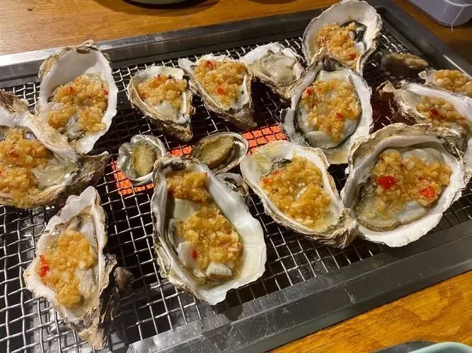 头一个,大蚝。钦州是”中国大蚝之乡”,这玩意儿个头吓人,巴掌大一个不算稀奇。茅尾海那片养出来的,肉肥得往外鼓。烤蚝摊子上,蚝壳往炭火上一扔,滋滋冒油,蒜蓉往上一浇,香得隔三条街都能闻见。5块钱一个,肉嫩得跟豆腐似的,一口下去满嘴鲜甜,汁水顺着嘴角流。本地人吃蚝不蘸料,就图那股子原味海腥气。一顿干掉20个不算事,吃完嘴唇油亮,舌头都是麻的。