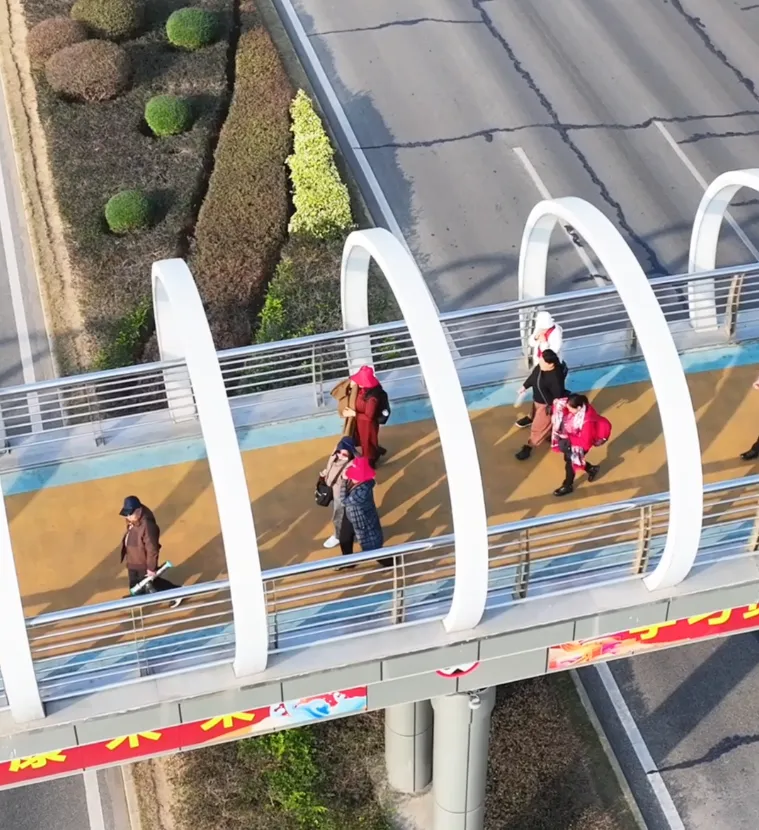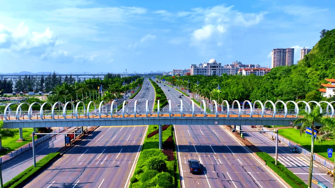 北部湾大道是防城港最热闹的交通动脉,沿线三座人行天桥连接着商场、景区与生活区,冬日里人来人往,烟火气最浓。