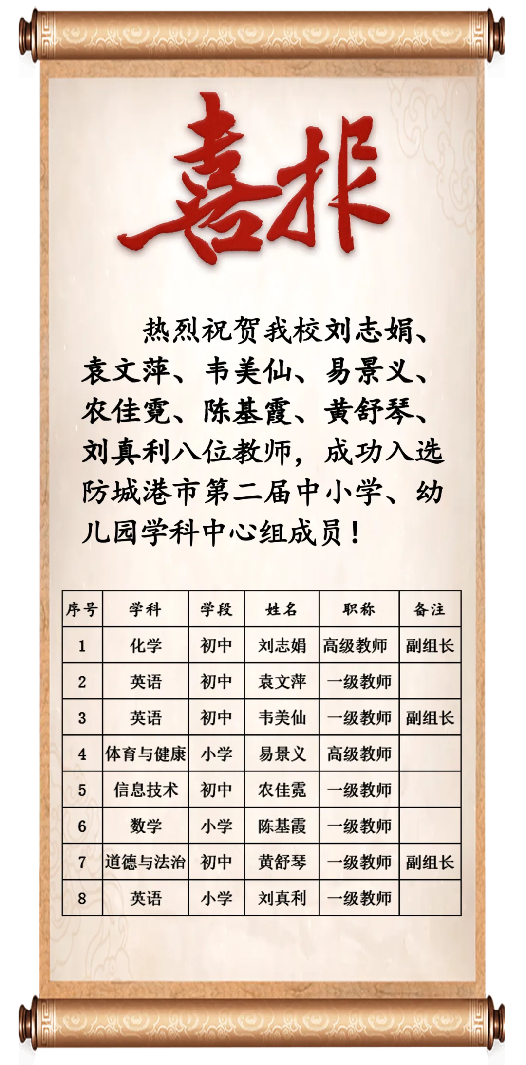 喜报!热烈祝贺我校八位教师成功入选防城港市第二届中小学、幼儿园学科中心组成员!