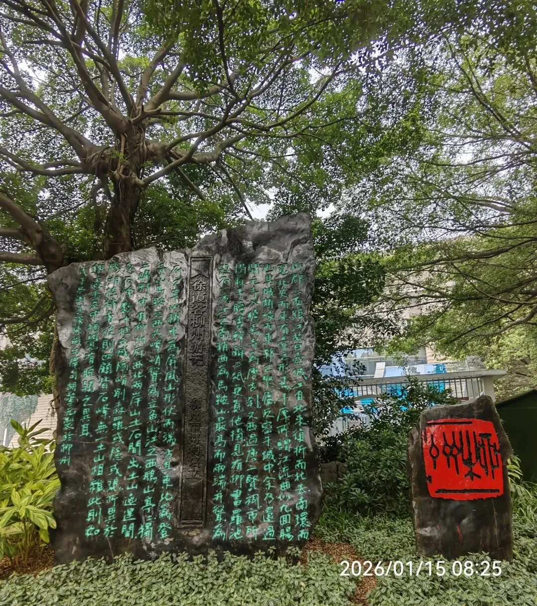 这次,心心念念的除了小半载未见的儿子,就是上次因天色入暮而意犹未尽的柳侯公园了。 步行至柳州博物馆,见路旁立有一石碑:徐霞客柳州游记 。应该有“人意山光,俱有喜态”的表达吧。 早晨,从地王新天地出发,奔着柳侯公园方向,散步于干净有序的大榕树下街道上,寻得一家可人“螺王府”小餐馆 ,用一顿特色美食开启新一天的旅程。 心念此处,着实是因为新读了《刘禹锡》一书,更深的了解了那段历史的来龙去脉,“二王八司马”的悲情。 书中还顺带着描写了柳宗元两件彰显其光辉品性的事:一,面对崔抗的乞求心生爱怜而愿娶其病危之女;二,上请裴度愿与刘禹锡交换谪籍,“牺牲自我而成就友人孝义”,愿“以柳州与播州相易”。 柳文寓景处, “心凝形释,与万化冥合。然后知吾向之未始游,游于是乎始。” 走进柳侯祠,感受一种别样的孤寂: “千山鸟飞绝,万径人踪灭。孤舟蓑笠翁,独钓寒江雪。” 柳宗元 “ 少时精敏,无不通达”,贬谪岁月凄怆悲凉,“零落残魂倍黯然,双垂别泪越江边。一身去国六千里,万死投荒十二年。”以致中年“齿疏发就种,奔走力不任。”的早衰。天妒英才,于四十七岁病逝。 “二十年来万事同,今朝歧路忽西东。皇恩若许归田去,晚岁当为邻舍翁。”——《重别梦得》 “ 弱冠同怀长者忧,临岐回想尽悠悠。耦耕若便遗身老,黄发相看万事休。”——《重答柳柳州》