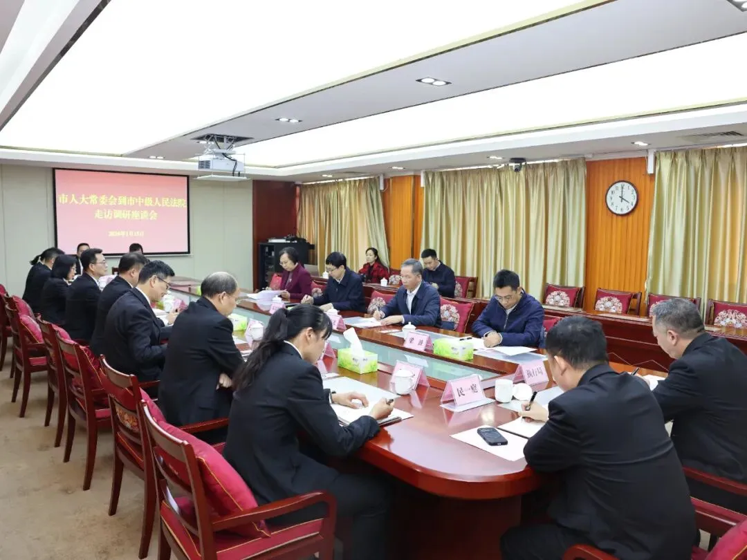 市人大常委会秘书长农志光、监察和司法委主任委员蒙森、研究室主任梁浒陪同调研。市中院领导班子成员、专职委员、相关部门负责人参加座谈。