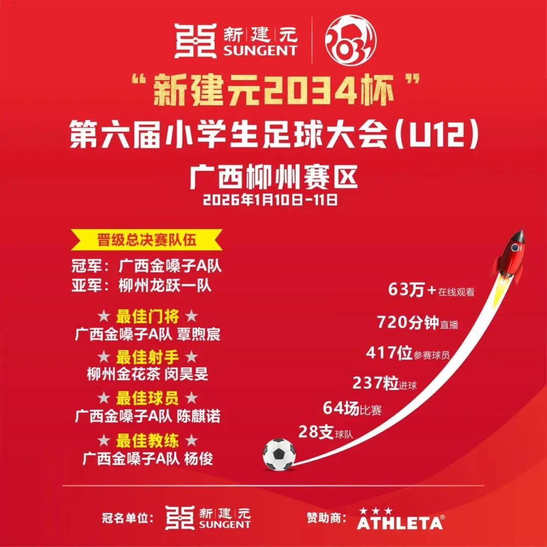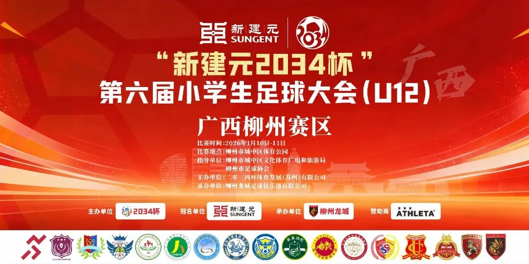 北京时间2026年1月10日上午8时30分,“新建元2034杯”第六届小学生足球大会(U12)广西柳州赛区在柳州市城中区体育公园准时开赛!感谢柳州市城中区文化体育广电和旅游局、柳州市足球协会和柳州龙城足球俱乐部有限公司对本次赛事的大力支持!2026新年迎盛事,28支球队相聚柳州。
