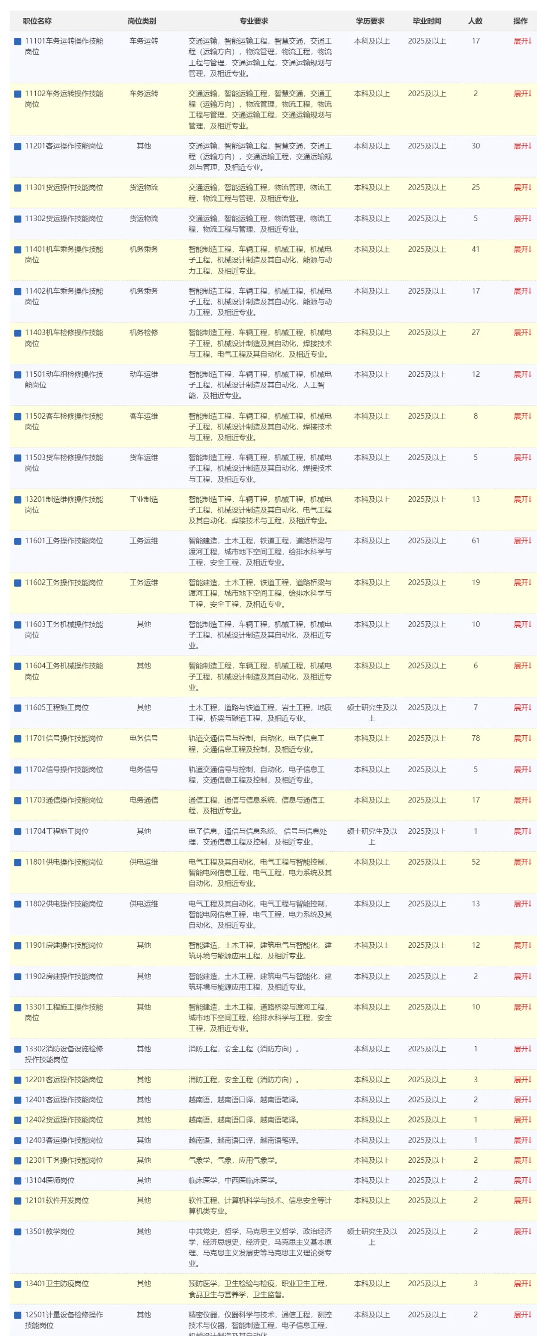附件:中国铁路南宁局集团有限公司招聘2026年高校毕业生公告一岗位列表