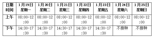2026年1月19日(星期一)至2026年1月25日(星期日)青秀分院疫苗接种信息如下: