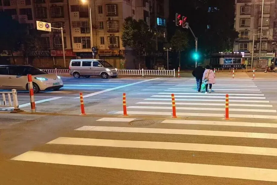 此次改造的核心在于对停车线实施差异化位移设计:从左至右,车道停止线依次后移3米、3米与4米,在路口构建出前后错落、层次分明的“立体化停车阵列”。这一设计并非简单的距离调整,而是通过精准的空间干预,在机动车与行人之间架设起一道“视觉通透区”,有效消除了车辆形成的“移动盲区”。同时,延长的制动距离为驾驶员赢得了宝贵的“反应缓冲带”,实现了从被动避险到主动预防的转变。