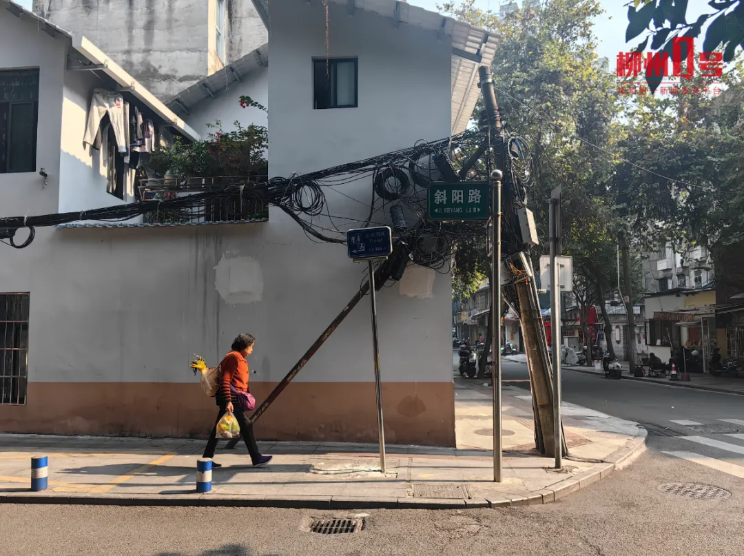 “这根线杆存在这里好多年了,一直都是这个样子,行人从旁边经过哪有不慌的。”市民梁女士说,她每天从这里经过去青云民生市场买菜,看到头上悬着成捆的线缆和路上斜着的线杆,都会不由自主地走到道路另一侧。“怕啊,万一线杆倒了怎么办。”梁女士说,希望相关部门能够消除安全隐患,重新将这根杆立正。