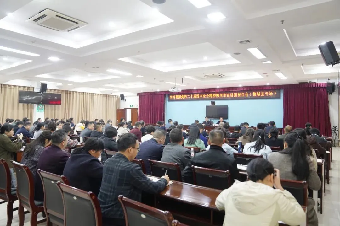1月16日,学习贯彻党的二十届四中全会精神柳州市宣讲团专题报告会(柳城专场)在县行政综合楼八楼会议室举行,县四家班子处级领导,县检察院领导,各乡镇、华侨管理区、县直各单位主要领导,县委理论宣讲团成员参加报告会。
