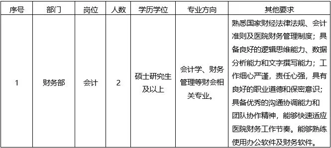 根据我院业务发展的工作需要,现计划招聘以下岗位,具体如下: