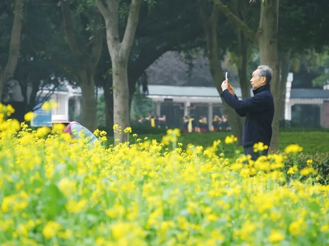 近日,柳州市区最高气温回升至20℃以上,市民纷纷脱下厚羽绒服,换上薄外套。与此同时,雀儿山公园的油菜花也竞相绽放,迎来最佳观赏期。